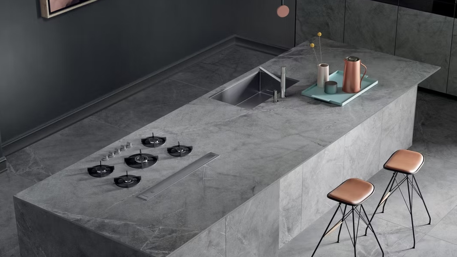 Atlantic Smoke ceramic worktops are also extremely resistant to heat, scratches, and UV exposure. Hot pans can be placed directly on the surface without damage, and the colour remains stable even in areas exposed to sunlight. Unlike many natural materials, ceramic does not require sealing and maintains its appearance with minimal upkeep.