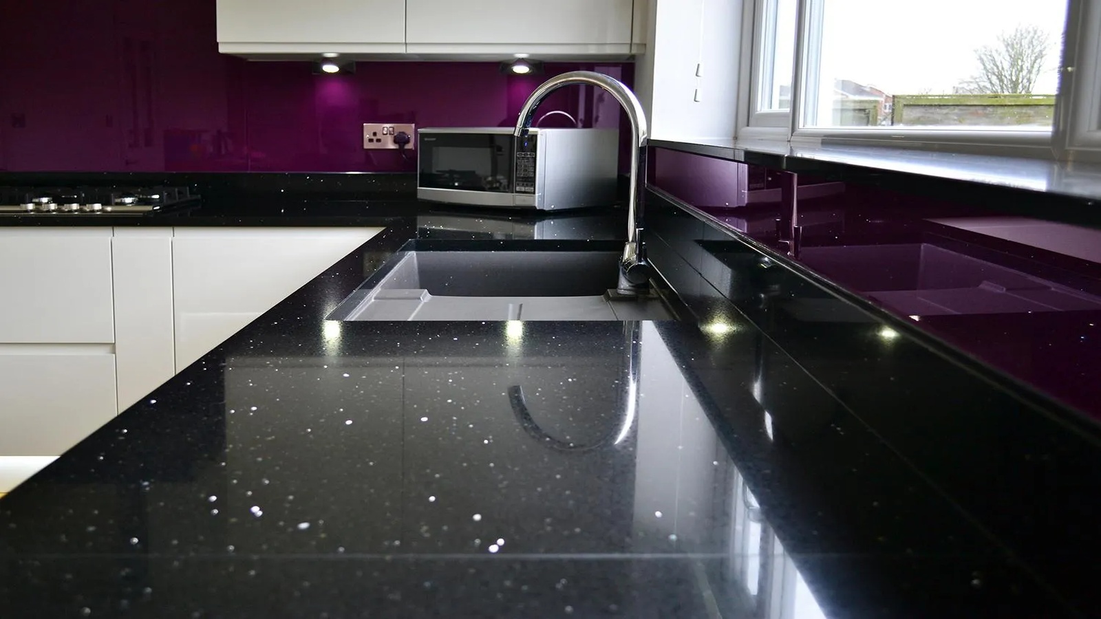 Manufactured from high-quality engineered quartz, Black Mirror Chip offers excellent durability for everyday use. The non-porous surface resists stains and supports easy cleaning, helping maintain a hygienic and low-maintenance worktop. Quartz does not require sealing, making it a practical choice for busy households and commercial environments.